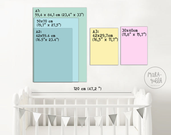 Marco no incluido. Recomiendo enmarcarlo lo más sencillo posible, con un marco color blanco o madera claro queda ideal.