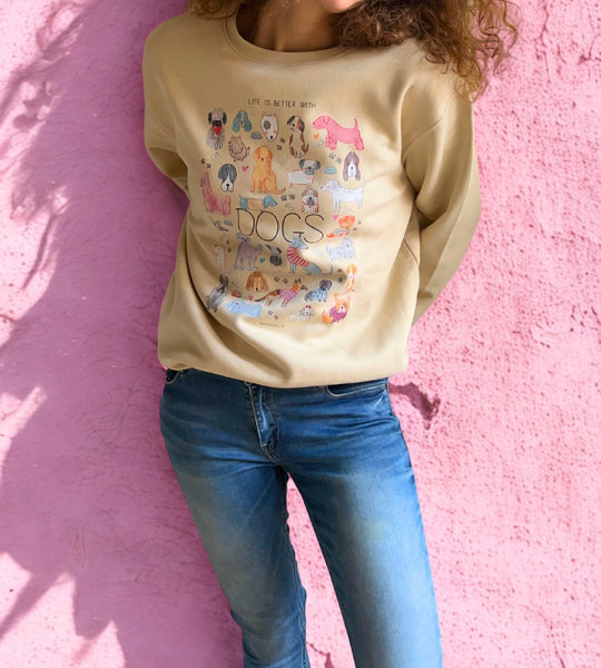 Sudadera ilustrada "Life is better with Dogs”